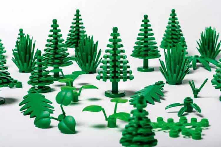 Berbagai bentuk tanaman mulai dari pohon, daun, dan semak-semak ini dibikin dari plastik yang bahan bakunya dari tanaman tebu. Katanya, plastik ramah lingkungan ini teksturnya lebih lembut dari plastik biasa. Rencananya, sampe tahun 2030 nanti, gak cuma lego tanaman aja yang bahan bakunya dari tanaman, tapi juga  semua balok lego.