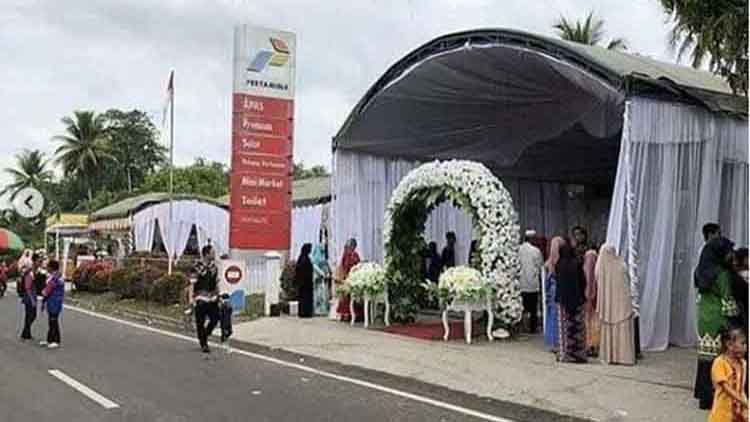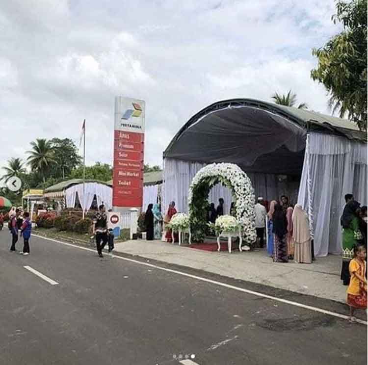 Nyeleneh Tapi Unik! Resepsi Pernikahan Ini Digelar di Pom Bensin!