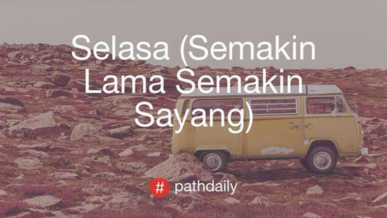 Selayaknya media sosial kebanyakan, Path juga punya fitur update status. Tapi yang beda dari Path adalah setelah ngetik status, di ujung kalimatnya ditulis #pathdaily, nah tulisan status kamu bakalan muncul di dalem gambar yang latarnya diacak secara otomatis.