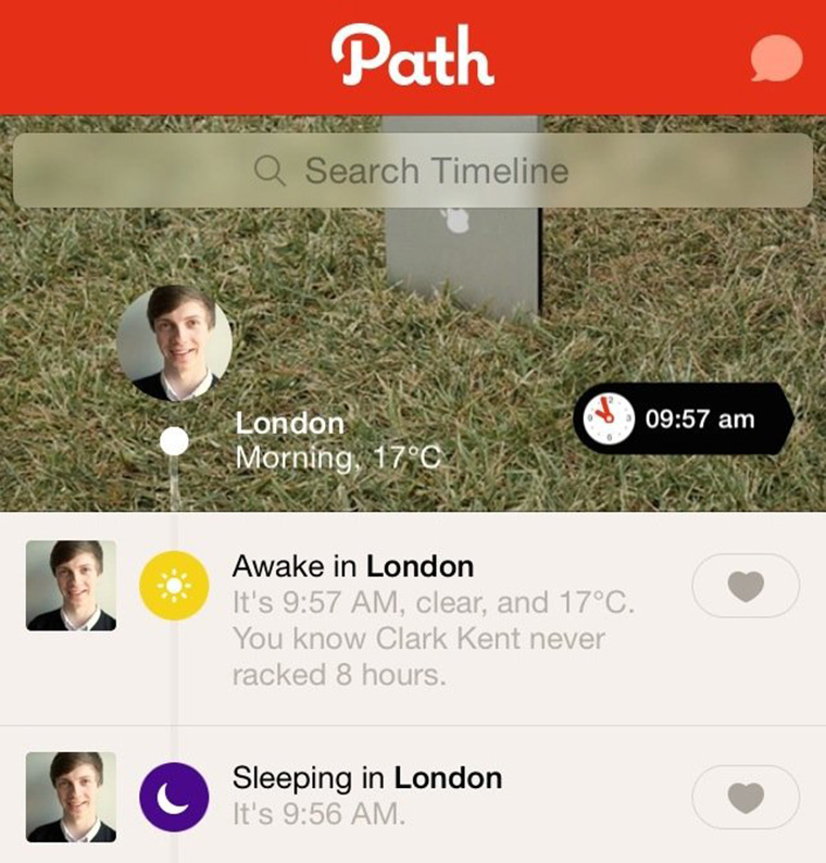 Keliatannya cuma di Path di mana ada fitur “Go to sleep” dan nanti bakalan dikirimin gambar domba. Paginya, setelah bangun tidur, jangan lupa buat aktifin “I’m awake” dan bakalan muncul durasi berapa lama kamu tidur.